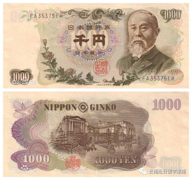 正面:日本小說家夏目漱石 背面:兩只仙鶴
