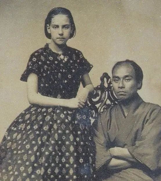 崇尚西方的福澤諭吉與美國(guó)女子合影