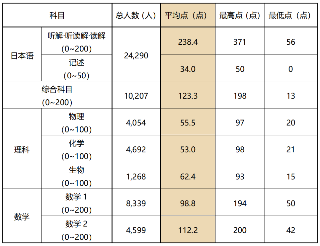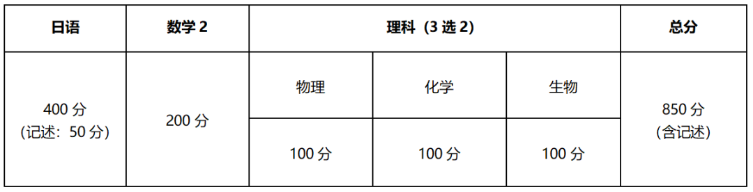 而選擇理科類的同學則需要參加日語、理科、數學2這三門科目的考試,總分850分(含記述)。