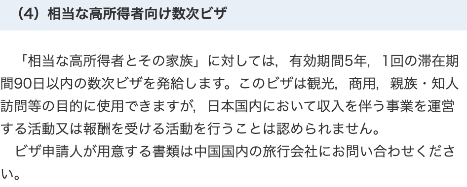 對(duì)于五年多次往返簽證日本法務(wù)省稱其為“相當(dāng)な高所得者向け數(shù)次ビザ”