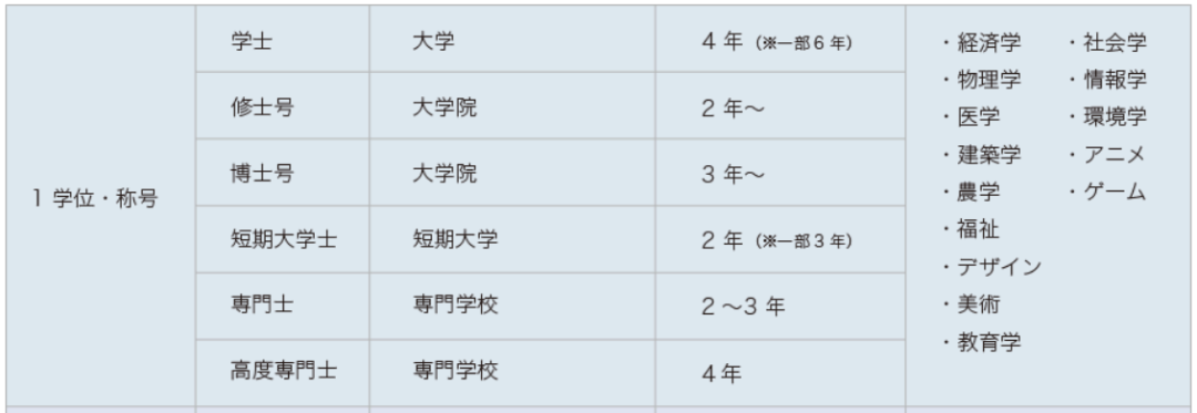 日本的學(xué)位分為六種!分別為:「學(xué)士」「修士」「博士」「短期大學(xué)士」「專門士」「高度專門士」。