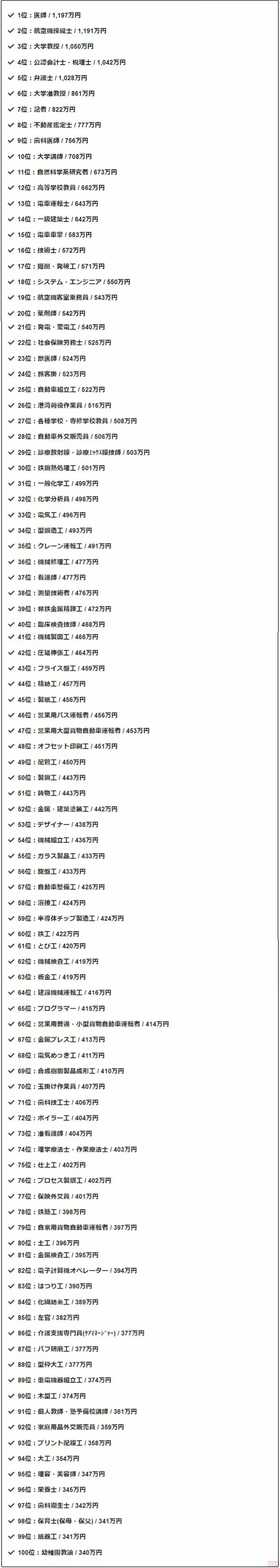 另外,日本哪個(gè)職業(yè)賺錢(qián)多,列個(gè)表給大家參考一下。