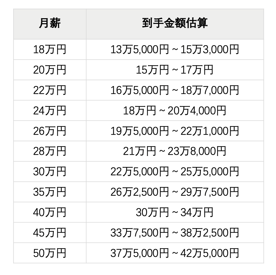 在日本獲得收入時(shí),需要交納健康保險(xiǎn)、年金和所得稅。員工固定工資的稅費(fèi)一般比較好估算,可以參考下表:
