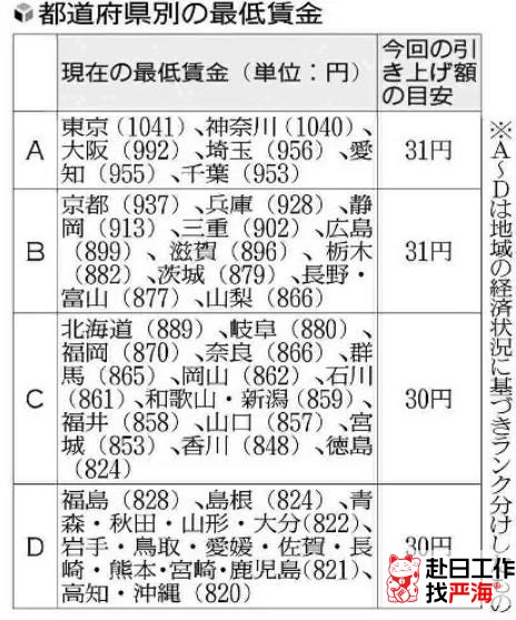 全國(guó)平均最低小時(shí)工資961日元。(比去年的全國(guó)平均930日元,增加了31日元)